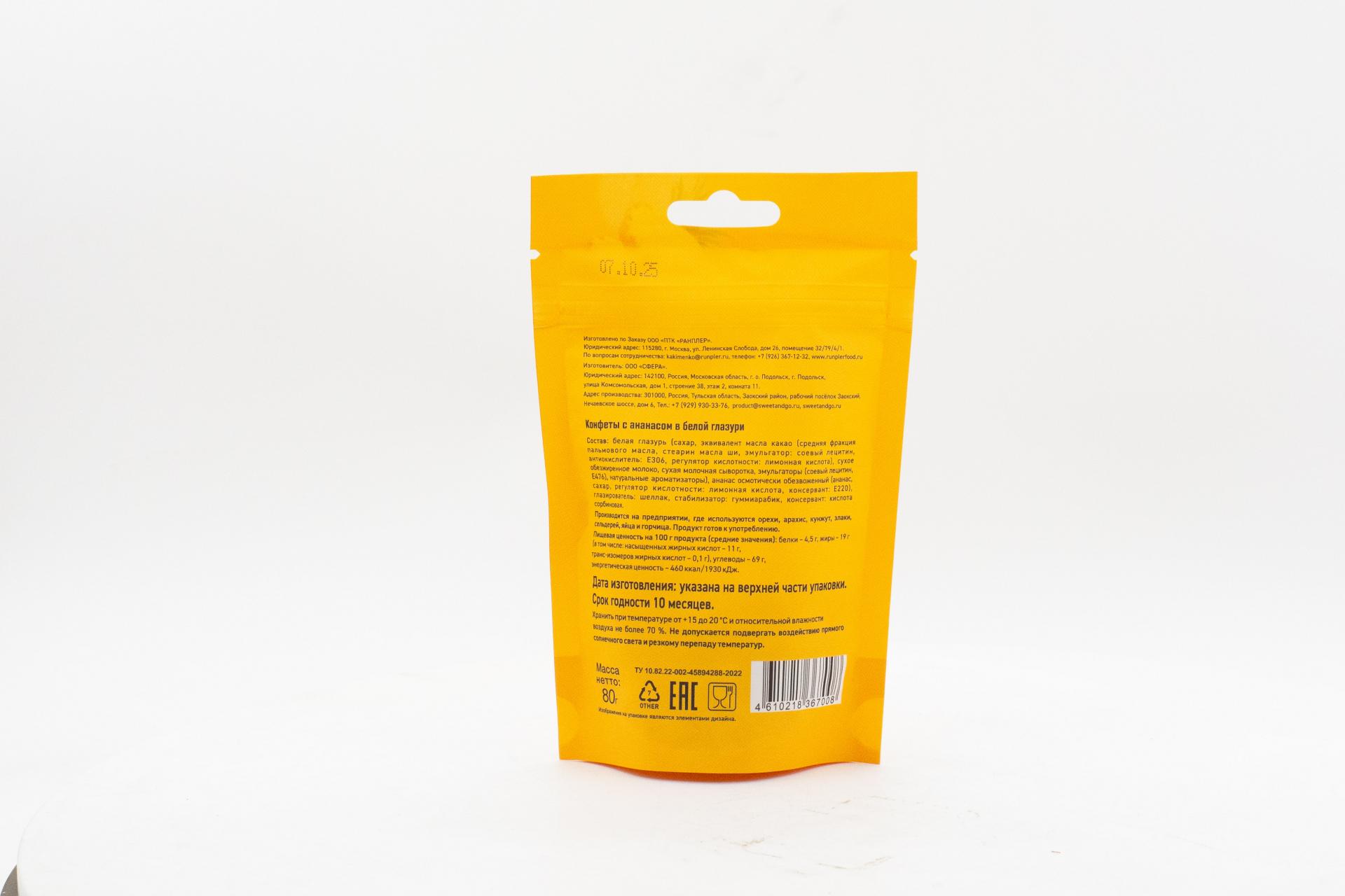 Конфеты Sweet&Go с ананасом в белой глазури (Россия) 80г121,28 руб. за штуку (в упак. 15 шт.) |