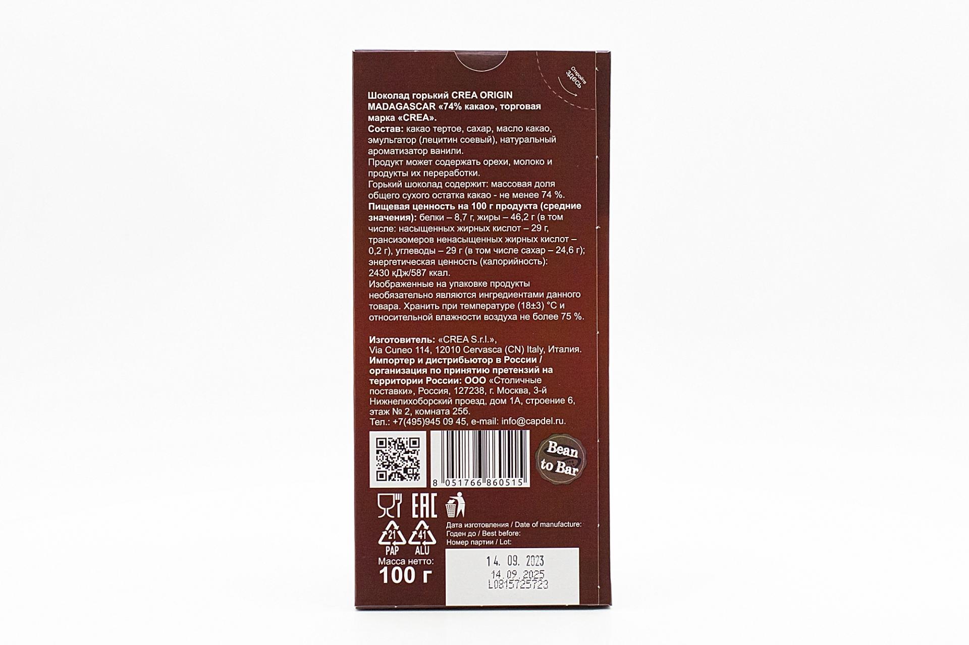 Шоколад Crea Origin Madagascar горький 74% какао 100 гр193,26 руб. за штуку (в упак. 10 шт.) |