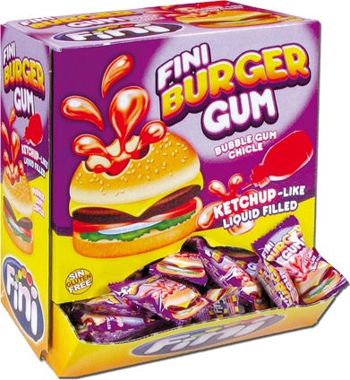 Жевательная резинка FINI "Бургер" с начинкой вишня-клубника 5,5 гр8,18 руб. за штуку (в упак. 200 шт.) |